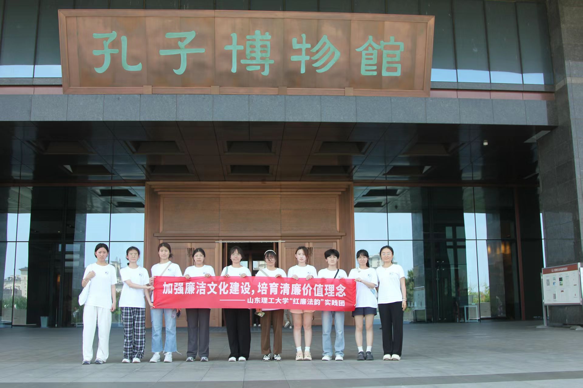7月10日,山东理工大学红廉法韵社会实践团赴孔子博物馆开展专题研学活动。在庄重典雅的展馆内,实践团通过文物展陈与数字技术相结合的展示方式,系统考察了儒家文化中的廉政思想体系。
