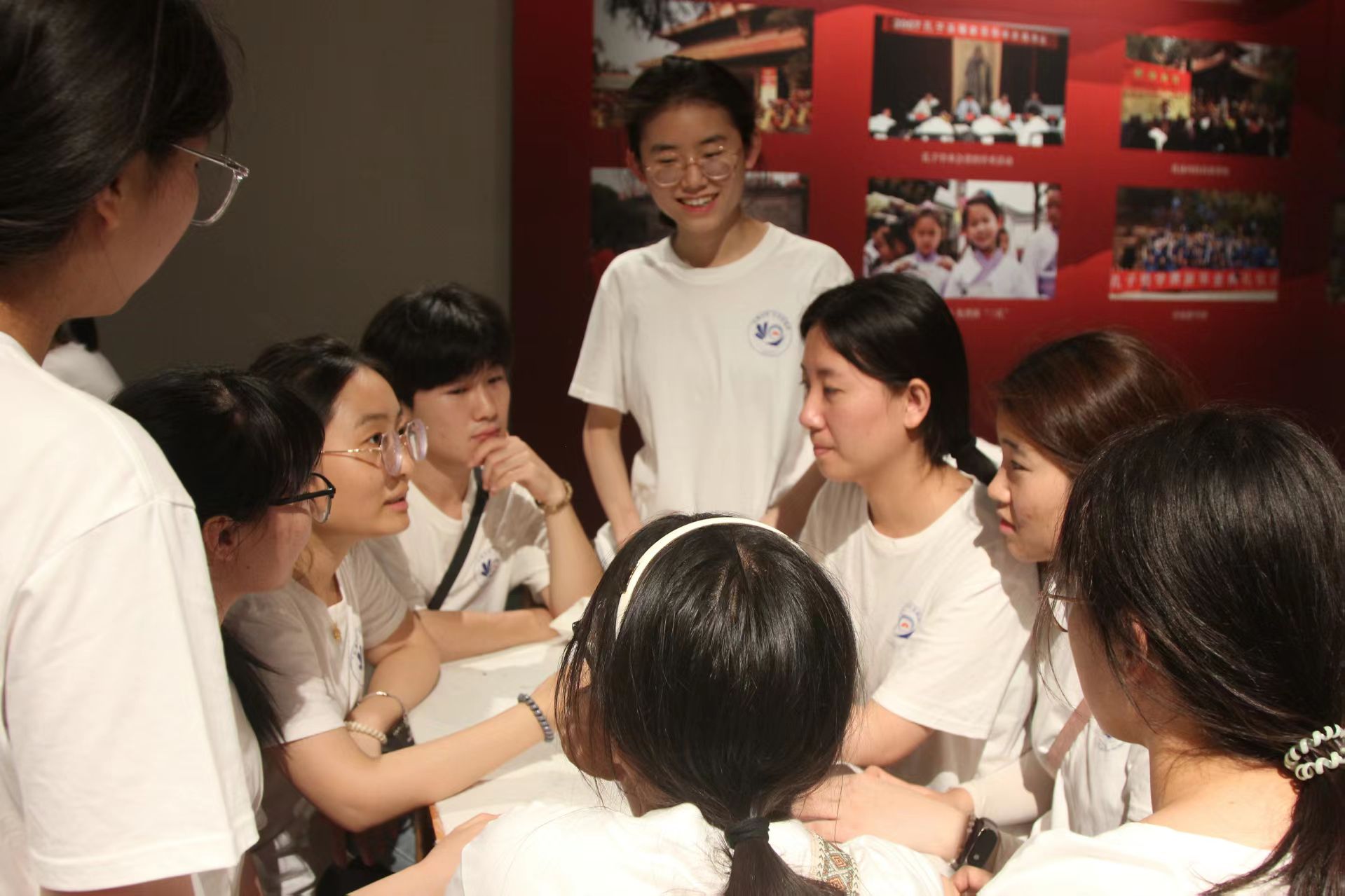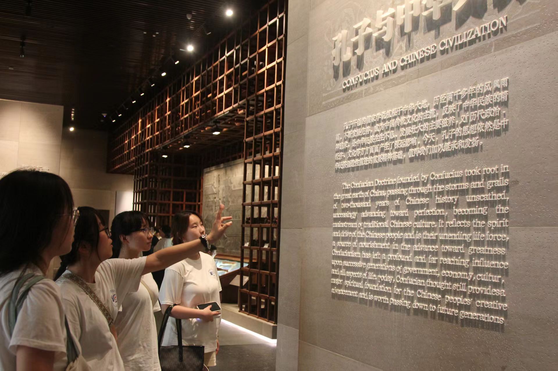 在核心展区,团队成员共同研习了孔子为政单元的丰富内容。通过集体观看孔子圣迹图多媒体展项,深入探讨了为政以德治国方略的现代意义;在诛少正卯历史场景复原前,队员们结合展板资料展开小组讨论,分析举直错诸枉用人原则的当代价值。在孔府珍藏展区,团队成员分工协作,有的负责研读孔氏家训碑刻,有的重点记录官箴文献,最后通过集体分享交流,全面把握了儒家诗礼传家传统中的廉政要求。