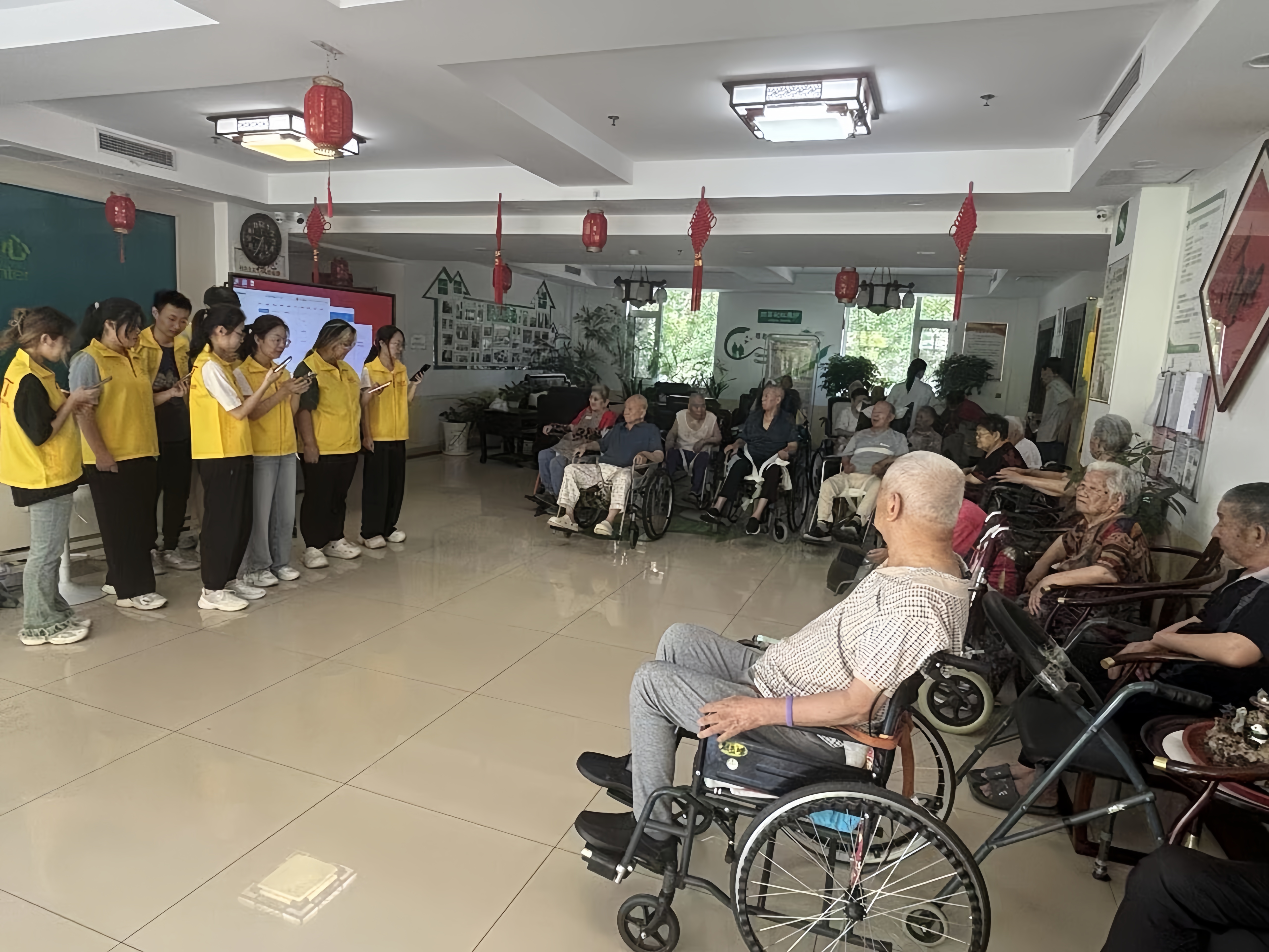 为深入践行志愿服务精神,引导青年学生在实践中感悟责任,传递温暖。于2025年7月11日,唱游红社会实践团在四季彩虹养护院开展活动。全体实践队员带着精心筹备的节目与满腔热忱齐聚于此,共同开启一场与岁月对话的温暖旅程,以青春之力守护夕阳红,用真诚陪伴诠释青年担当。