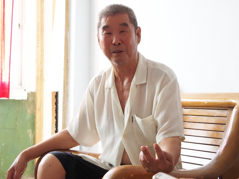 图为曹金胜爷爷为实践团成员讲解工作经历
