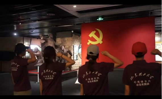 在淄博历史展览馆,“齐迹数旅”社会实践团成员面向党旗庄严宣誓,追溯红色记忆。这一宣誓,让成员们在传承地域文化中厚植红色信仰,担当时代使命,更以青春力量延续文化根脉。未来,团队将带着这份感悟与收获,努力讲好淄博故事,让城市的蓬勃活力绽放光彩,让齐文化的深厚底蕴得以彰显。
