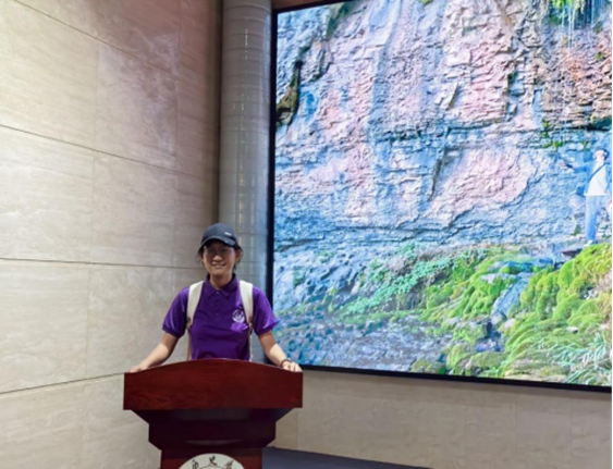 实践团成员登上淄博历史展览馆讲台,借助背后大屏呈现的当地山水景色,将参观所学的齐文化知识与实地走访时的真切感受相串联,进行分享交流。这一分享交流让成员们对齐文化有更深刻的了解。于此同时,成员们也惊叹于淄博包容多元的文化特质和浓厚的人文气息。