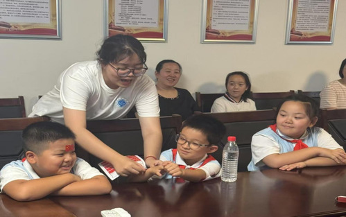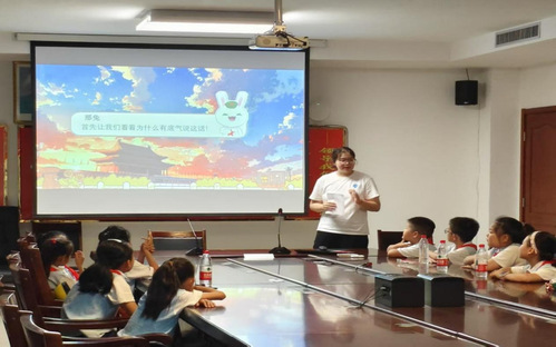 宣讲伊始,实践团成员以动漫《那年那兔那些事儿》为引,沿着历史脉络展开讲解。从1919年五四运动中青年学子“反帝反封建”的呐喊,到1927年南昌起义打响武装反抗的第一枪;从1949年开国大典上五星红旗冉冉升起,到1950年抗美援朝战争中“最可爱的人”保家卫国的壮举;再到1964年第一颗原子弹爆炸成功的震撼瞬间,宣讲人用幽默通俗的语言将重大历史事件转化为孩子们能理解的故事。