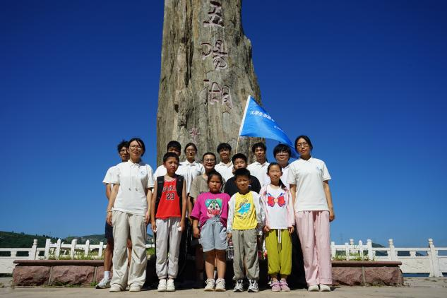 经过两小时的徒步,队伍抵达目的地五阳湖,开阔的湖光山色令孩子们赞叹不已。实践团随即组织孩子们在休憩交流中分享心得,现场洋溢着探索与求知的热情。随后,实践团成员同孩子们一起参观了五阳湖博物馆,深入了解了当地的人文历史。