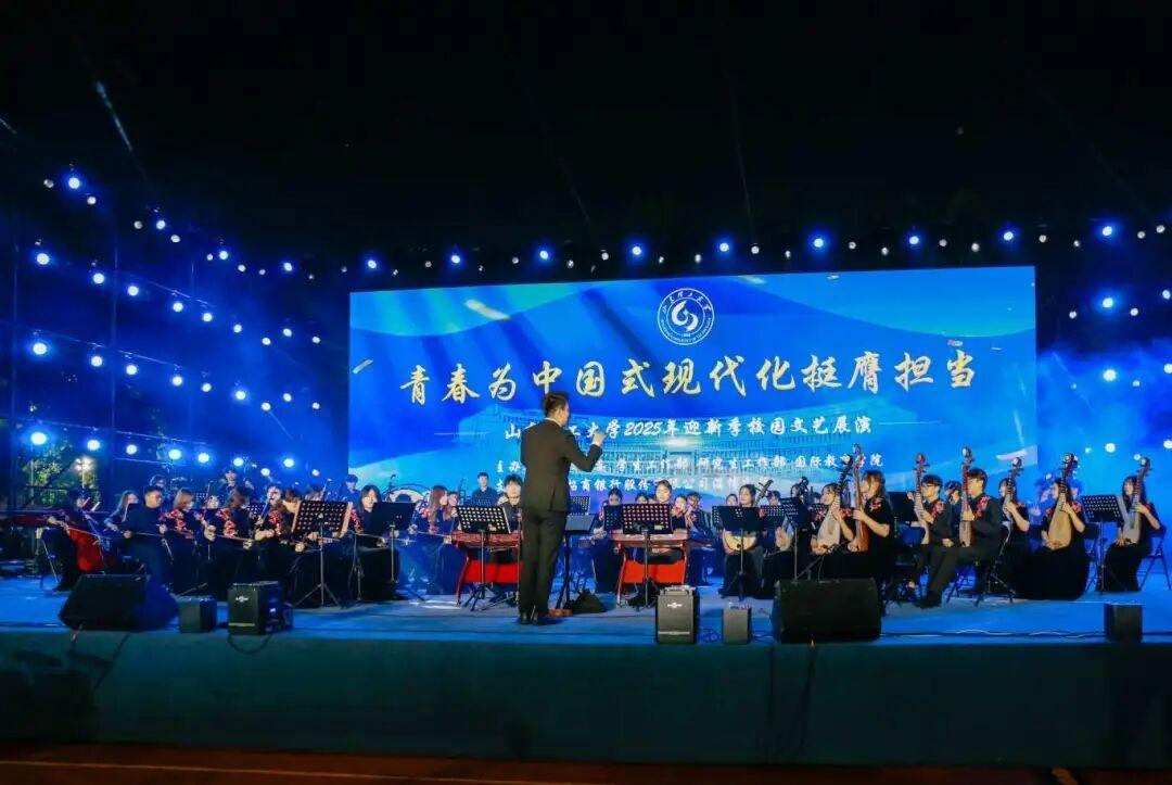 为深入学习贯彻习近平新时代中国特色社会主义思想,进一步浓厚校园文化氛围,充分展示学校的办学水平和发展成果,鼓舞和激励广大师生员工团结和谐、积极向上,引导广大同学立报国强国大志向、做挺膺担当奋斗者,9月28日晚,“青春为中国式现代化挺膺担当”2025年迎新季校园文艺展演在学校中心体育场举行。校党委副书记苏守波、杜方岭,党委常委、纪委书记,驻大学纪检监察组组长聂法良,校党委常委、副校长陈盛伟、陈靖、庞秋香出席,与现场万余名师生共同观看演出,唱响青春旋律,奏响奋进乐章。