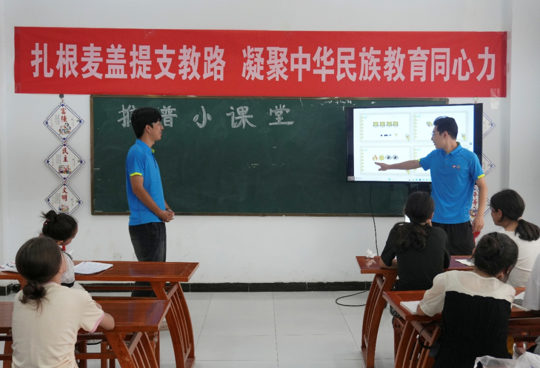数学与统计学院鲁喀石榴籽社会实践团队赴新疆麦盖提县开展以“乡音通四海,同心共振兴”为主题的推普社会实践活动。实践团针对当地多民族聚居特点,精准施教:深入社区,由维吾尔族成员以双语结合、情景演绎等方式,为不同年龄段居民教授基础拼音、日常用语及文化内涵;在“红领巾小课堂”,通过纠正发音、“看图识字”等趣味活动,帮助低龄儿童学习普通话并了解汉字文化。同时,团队走进农家乐开展助农直播,以普通话介绍产品与当地风土人情,拓宽农产品销售路径。此次实践将普通话推广与民族交往、经济发展结合,既搭建了民族间的“连心桥”,助力沟通交流与情谊联结;又打造了“致富桥”,赋能农业发展与乡村振兴;更筑牢了“同心桥”,推动铸牢中华民族共同体意识深入人心。活动获当地认可,是高校落实推普战略、服务民族地区发展的生动实践,为民族团结和共同发展贡献了青春力量。