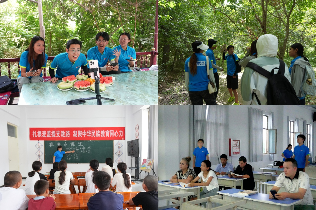 数学与统计学院鲁喀石榴籽实践团赴新疆维吾尔自治区喀什麦盖提县,以多元实践筑牢民族团结桥梁。在社区,实践团协助“一窗通”服务,调研教育、生活等情况,推动专业知识与社区服务融合;在“红领巾小课堂”中,实践团开展普法教育和兴趣课程,结合家访丰富学生暑期生活,铸牢中华民族共同体意识;普通话教学精准分层,对成年居民用双语结合、情景演绎教授基础拼音与文化内涵,对青少年以甲骨文与现代汉字对照教学,有效提升其普通话水平,增进民族理解;走进福利院,聆听“开拓新疆”的代批老先生分享过往,传承民族团结精神,延续跨代情谊,以实际行动践行民族团结,助力民族地区发展。