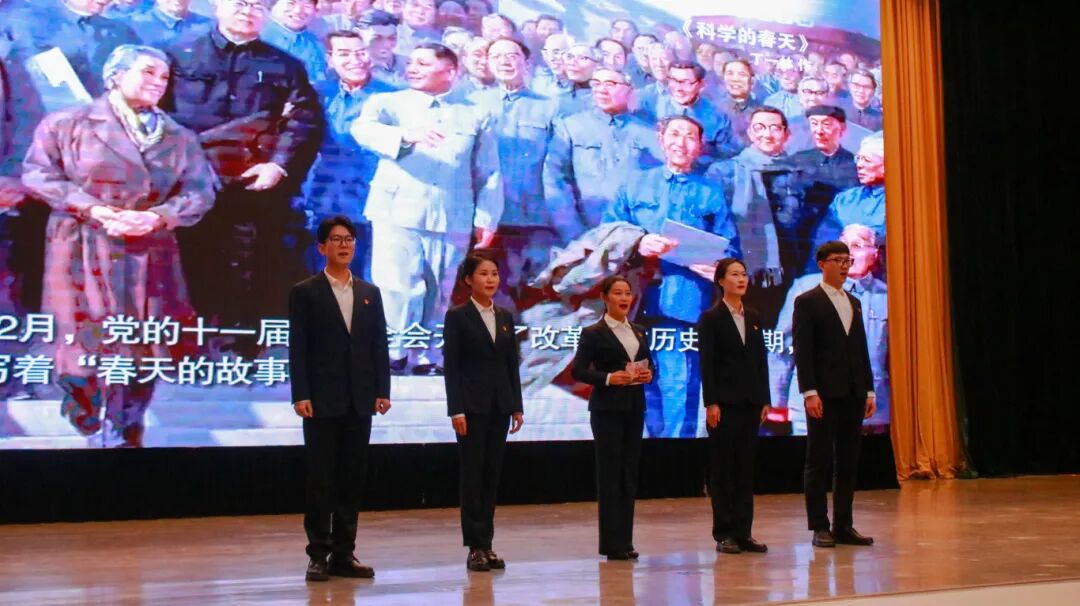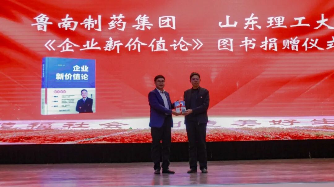 周冰代表鲁南制药集团为学校捐书,助力学校教育教学和人才培养。全体人员共同观看鲁南制药集团“红色沂蒙”宣讲团带来的主题展演。此次展演活动分为“党群心连心”“拥军勇支前”“日月换新天”“时代谱新篇”四大篇章,通过影像交织、情景还原、角色扮演等形式,生动讲述沂蒙红嫂、沂蒙六姐妹、全国劳动模范刘嘉坤、时代楷模赵志全的感人故事。
