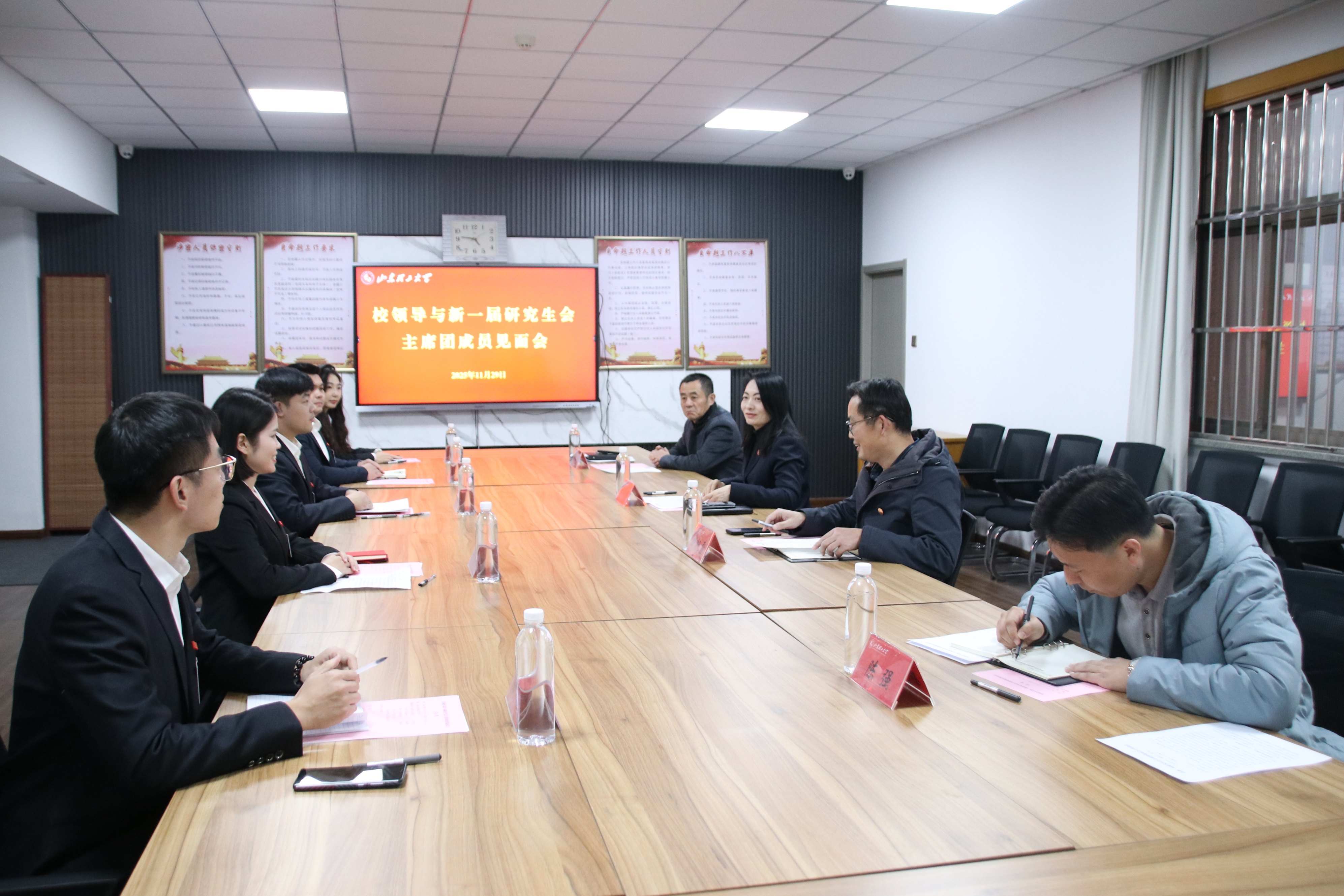 在研究生会主席团见面会上,庞秋香代表学校党委向新当选的研究生会主席团表示祝贺,对新一届研究生会工作提出三点希望和要求:一是涵养家国情怀,把准青春航向,主动承担起科研报国的光荣使命;二是聚焦主责主业,服务成长成才,不断激发广大研究生的科研热情,营造勇于创新的浓厚氛围;三是加强自身建设,发挥表率作用,发扬务实作风,提升综合能力,开创研究生会工作新局面。
