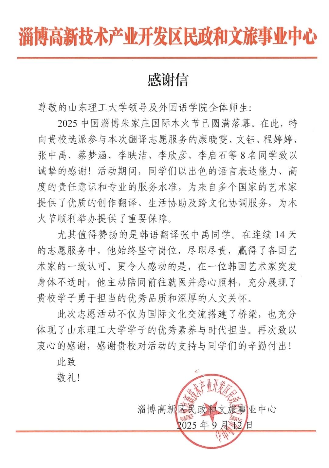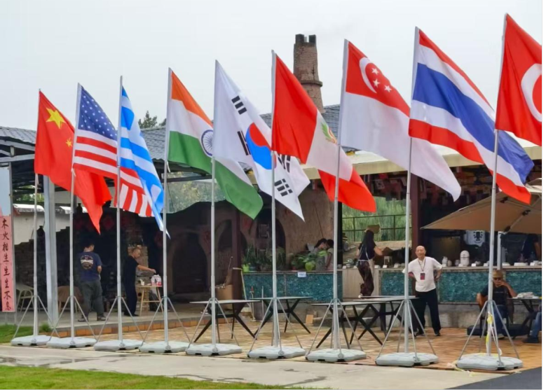 9月1日,2025年中国(淄博)国际木火节在在淄博高新区朱庄社区正式拉开帷幕,来自中国、美国、希腊、秘鲁、韩国、新加坡、泰国、土耳其、印度9个国家不同文化背景的近60位陶艺家齐聚淄博,开展陶艺创作与国际文化交流。此次活动中,山东理工大学外国语学院“语译帮”青年志愿团受邀开展为期十余天的志愿服务工作,凭借其专业的语言服务精准传译,成为促进中外文化交流的重要桥梁与纽带。