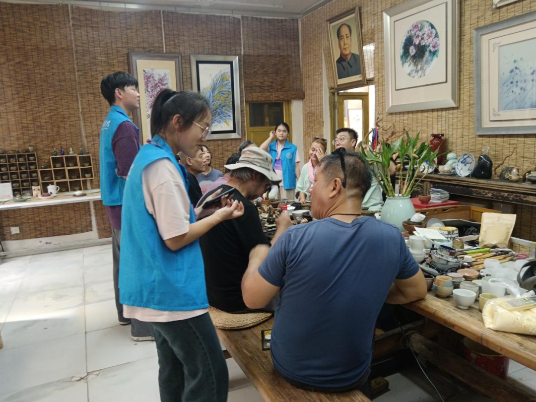 “语译帮”志愿者们不仅提供了高效的语言服务,更主动扮演起淄博陶瓷文化传播者的角色。他们用流利的外语向国际艺术家生动讲述淄博陶瓷的历史传承、工艺特色与文化内涵,帮助外国嘉宾深入理解中国陶瓷艺术的独特魅力。在陶艺创作现场,志愿者们悉心协助准备材料、整理工具。此外,志愿者们还积极组织参与国际艺术家与市民之间的文化交流活动,让陶瓷艺术走进大众,让世界了解淄博。