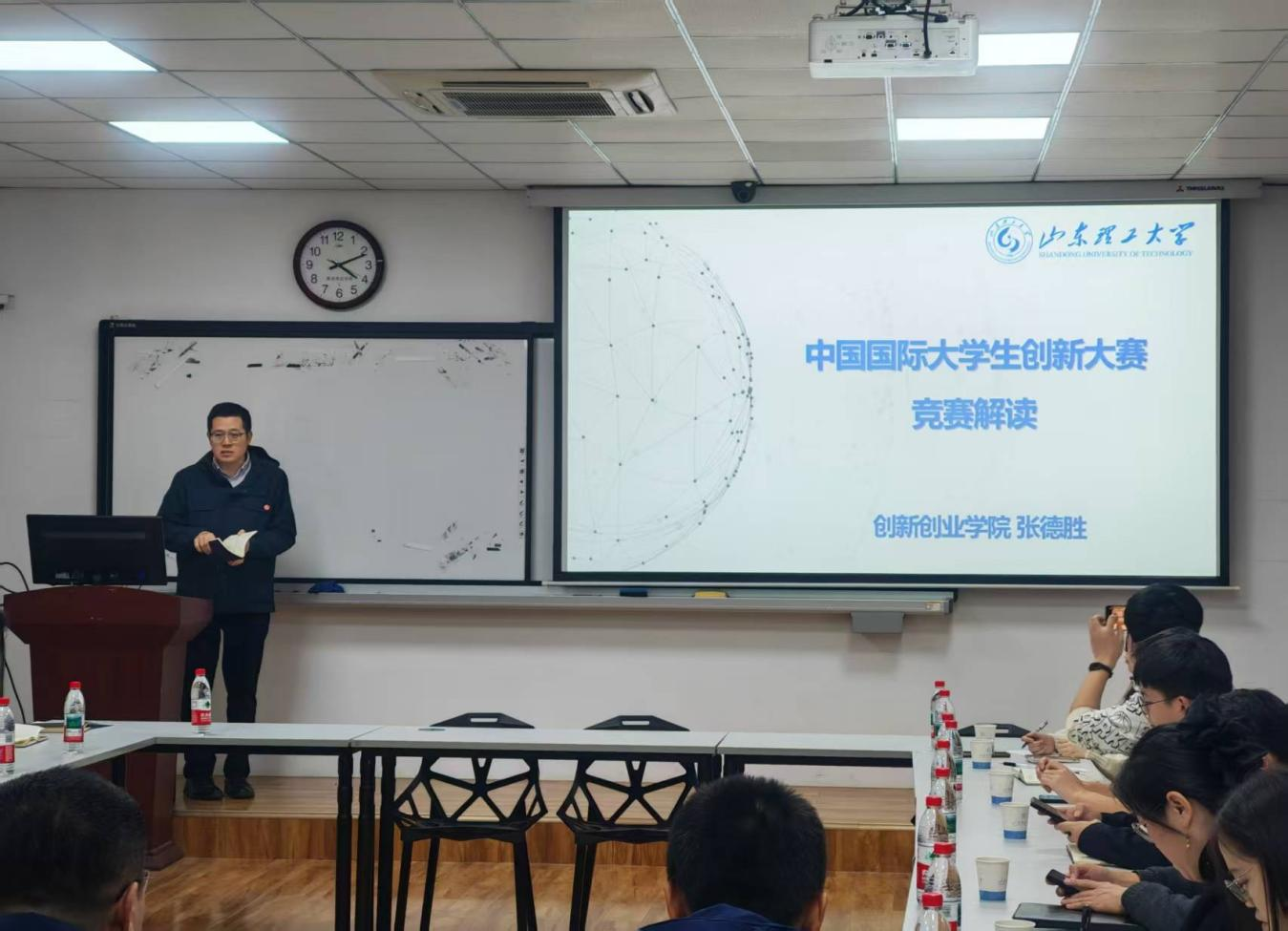 创新创业学院张德胜老师就中国国际大学生创新大赛的相关工作进行了统筹部署与宣讲。张老师结合学院学科特色与往年参赛情况,分析了当前创新竞赛面临的形势与机遇,鼓励全院师生依托专业优势,积极挖掘具有潜力的创新项目,不仅要关注技术突破,更要注重项目的社会价值与落地转化。