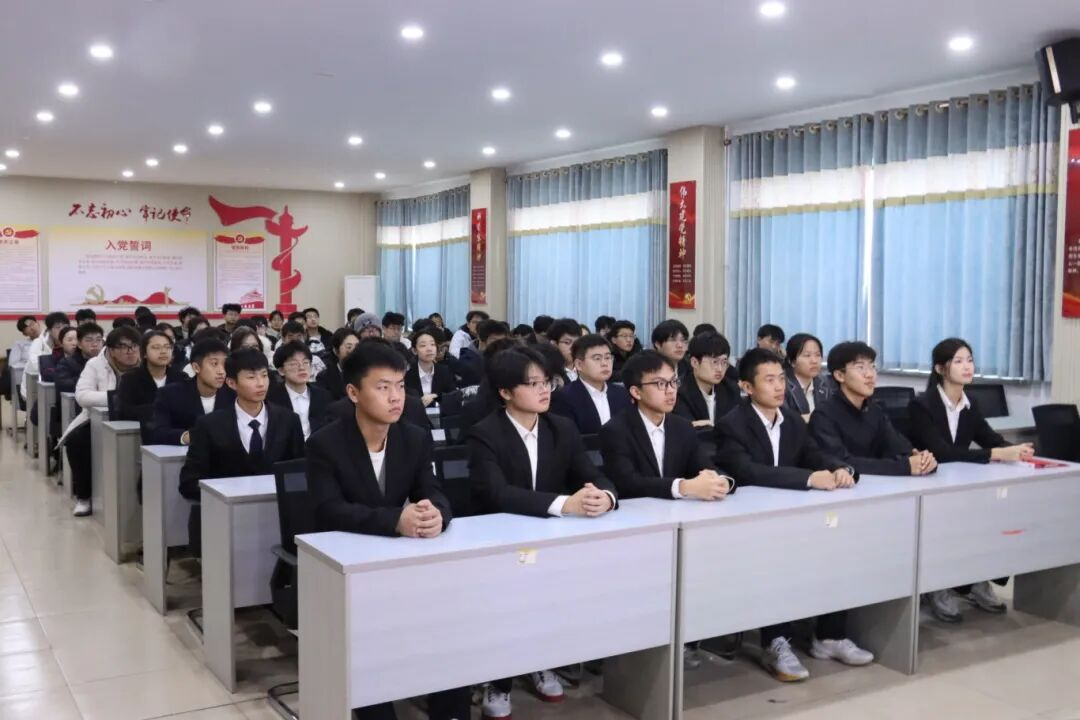 为进一步凝聚新时代青年力量,激励广大团员坚定理想信念、勇担时代使命,12月4日下午,学院于12号教学楼217会议室举行2025年下半年新团员入团仪式。学院团委书记、学工办主任孙兆风,辅导员范晶晶、贾晶晶、姜瑞瑞、蒋明真,优秀党团员代表,入团积极分子代表及全体新发展团员参加仪式。仪式由辅导员蒋明真主持。