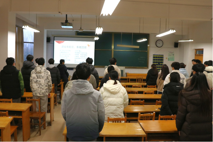 最后,仪式在激昂的《光荣啊,中国共青团》歌声中落下帷幕。全体人员起立合唱,歌声回荡在教室的每一个角落,传递着青年一代的蓬勃朝气与昂扬斗志。