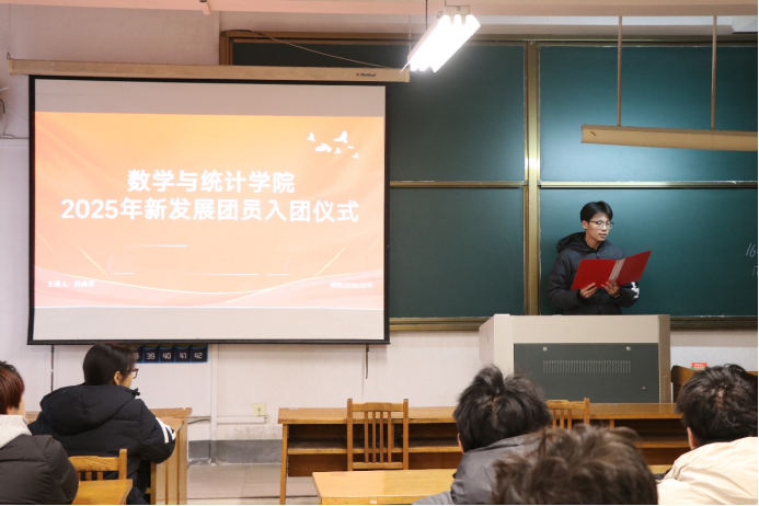 为进一步加强共青团组织建设,引导广大青年坚定理想信念、勇担时代使命,12月11日,数学与统计学院于15教431教室隆重举行中国共产主义青年团入团宣誓仪式。团委书记王晓冬老师、优秀团员代表及全体新团员参加了本次仪式,仪式由青拓部部长吕昊洋主持。