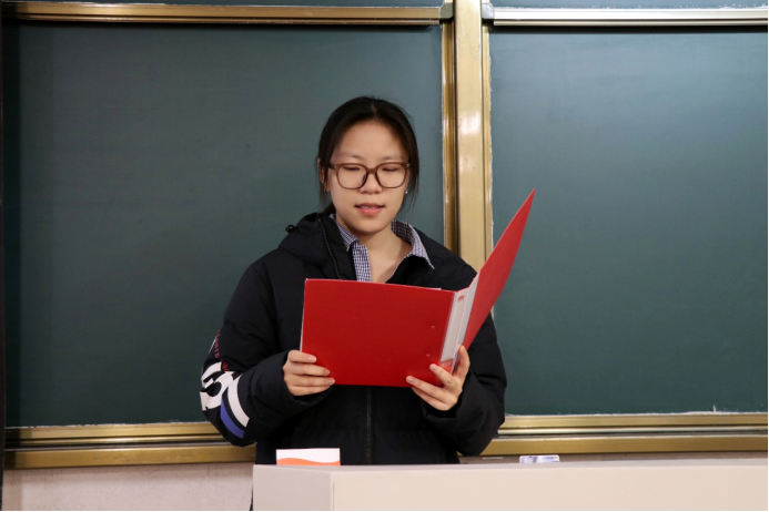 新团员代表滕真珍同学发言。她分享了加入共青团的激动心情,表达了对共青团组织的崇敬与热爱,并表示将以团员的标准严格要求自己,勤奋学习、积极进取,践行团员义务,为团旗增光添彩,不辜负团组织的培养与期望。