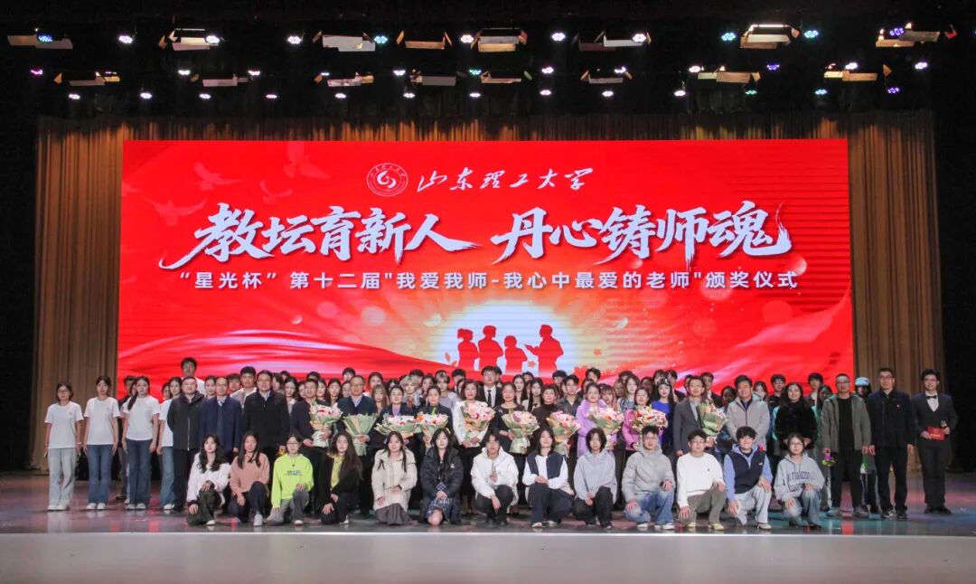 教坛育新人,丹心铸师魂。12月30日晚,第十二届“我爱我师——我心中最爱的老师”颁奖仪式在大学生艺术中心礼堂举行。校党委常委、副校长张守珩出席,淄博星光之城信息科技有限公司相关负责人,学校相关部门单位负责人、受表彰教师和800余名师生代表现场观看。