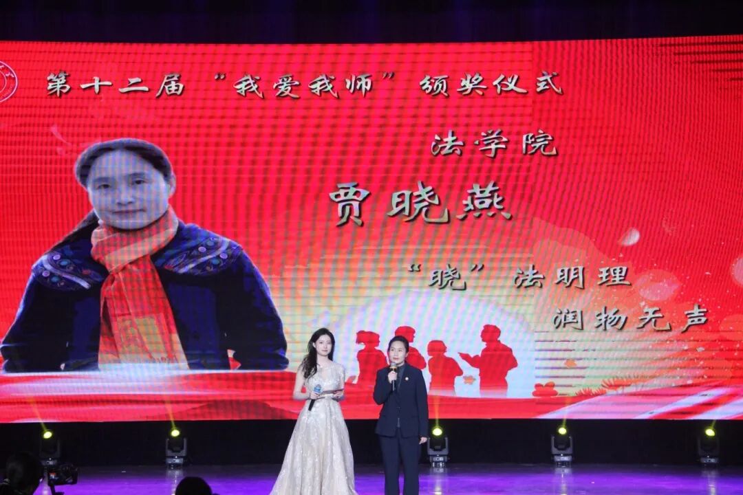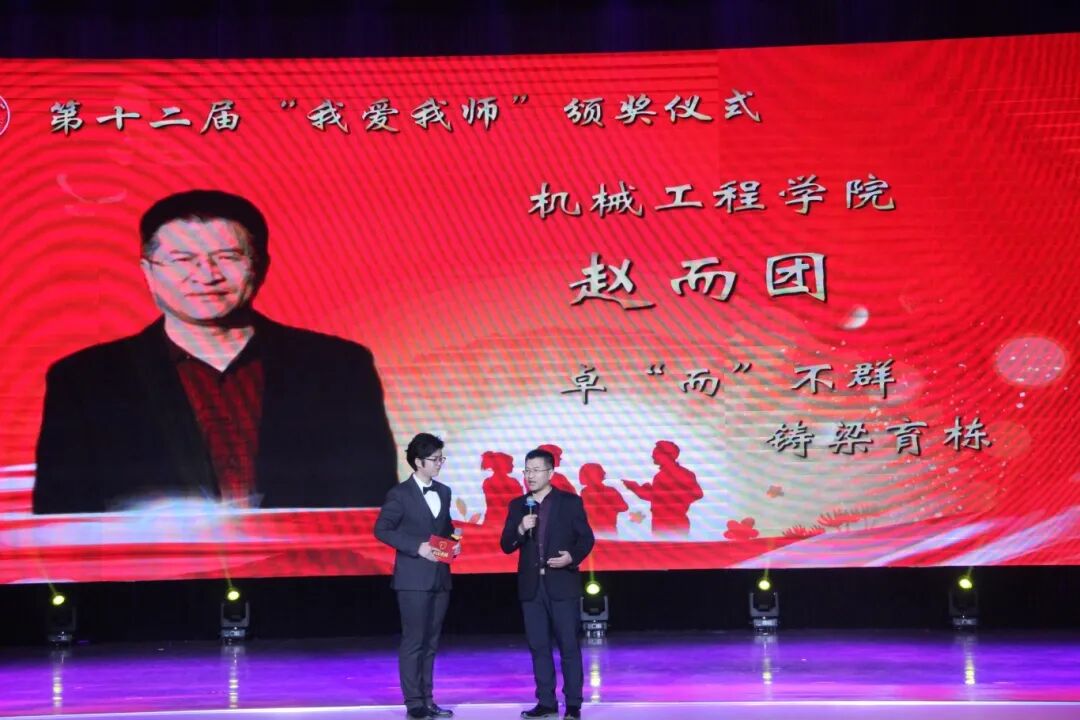 颁奖仪式上,学生代表为获得本届“我爱我师——我心中最爱的老师”称号的机械工程学院赵而团、交通与车辆工程学院郭栋、电气与电子工程学院刘丽娜、计算机科学与技术学院常征、化学化工学院孟秀霞、建筑工程与空间信息学院郭兵、物理与光电工程学院孙美玲、法学院贾晓燕、音乐学院张海英、体育学院王小迪等10位教师,献上奖杯和鲜花,代表广大同学表达了对老师们的感激和祝福。