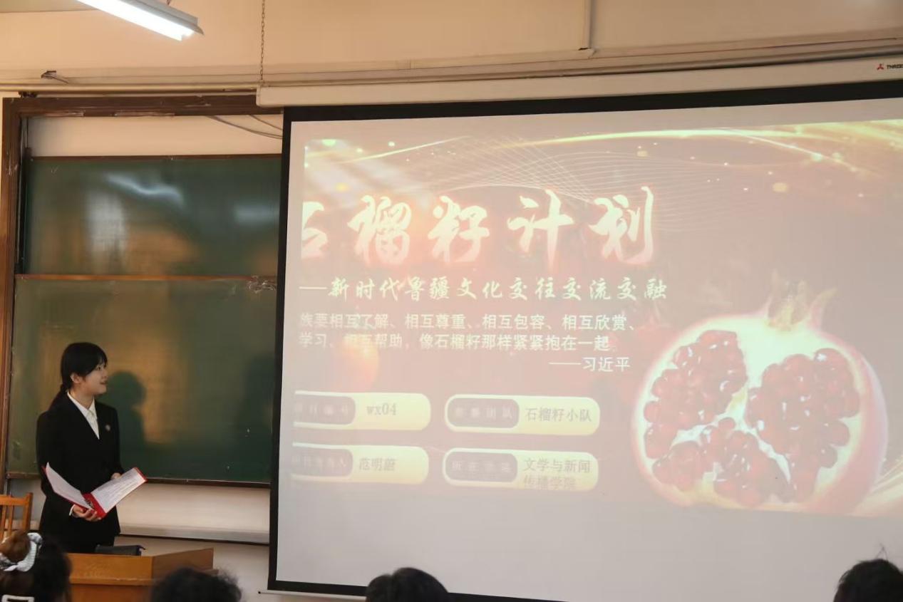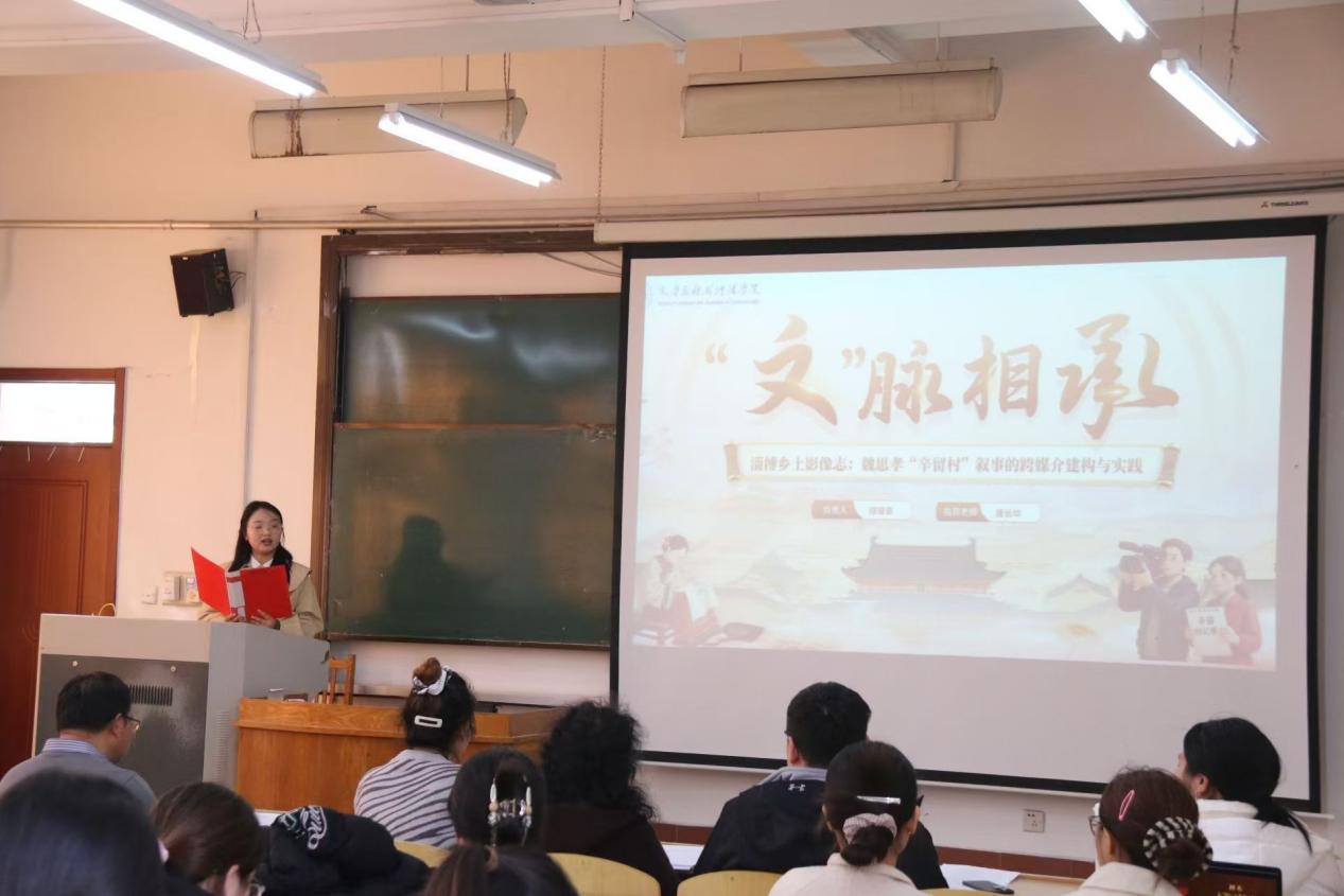 答辩现场气氛热烈,各学生团队按序登台,团队项目涵盖高密剪纸、微短剧、数字乡村等多个领域。汇报学生紧扣社会发展脉搏,立足专业特色,通过PPT展示、产品展示、现场问答等方式,在4分钟内围绕项目背景、研究内容、创新特色、实施路径及预期成果等方面做详细陈述,充分展现了学院学子的创新活力与学科融合能力。